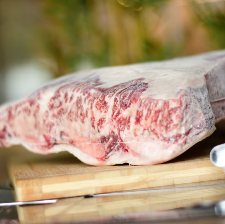 Disfruta de carne Wagyu americana premium, asada a la perfección para ti.