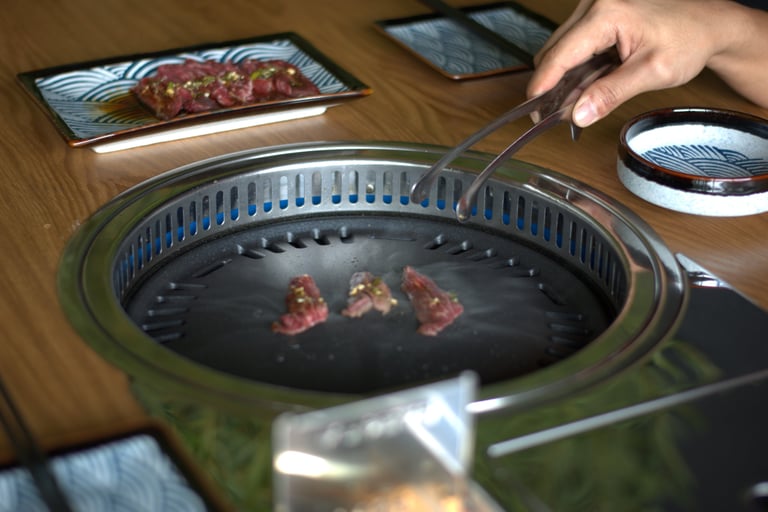 El yakiniku es una experiencia tradicional de BBQ japonés en la que cortes premium de carne se asan directamente en la mesa.